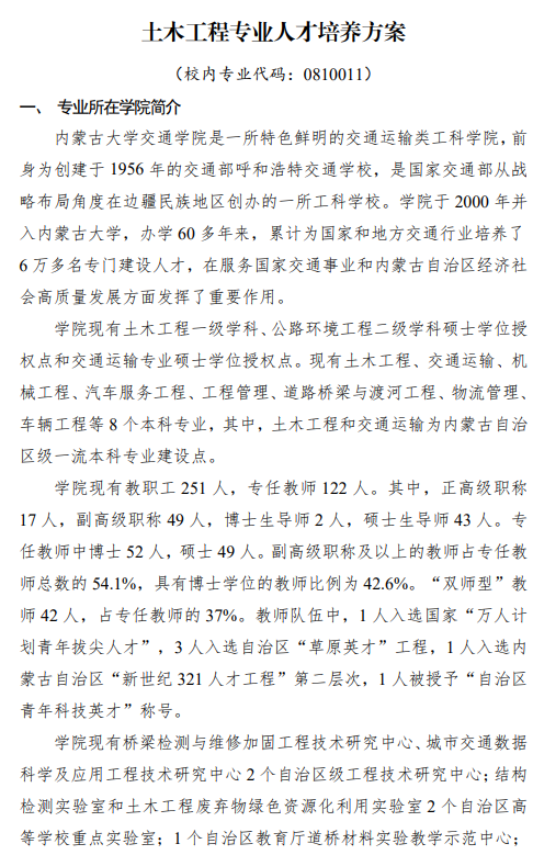 土木工程专业人才培养方案(2023版)